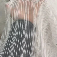 Dikey Çizgili Ekru Tül Perde